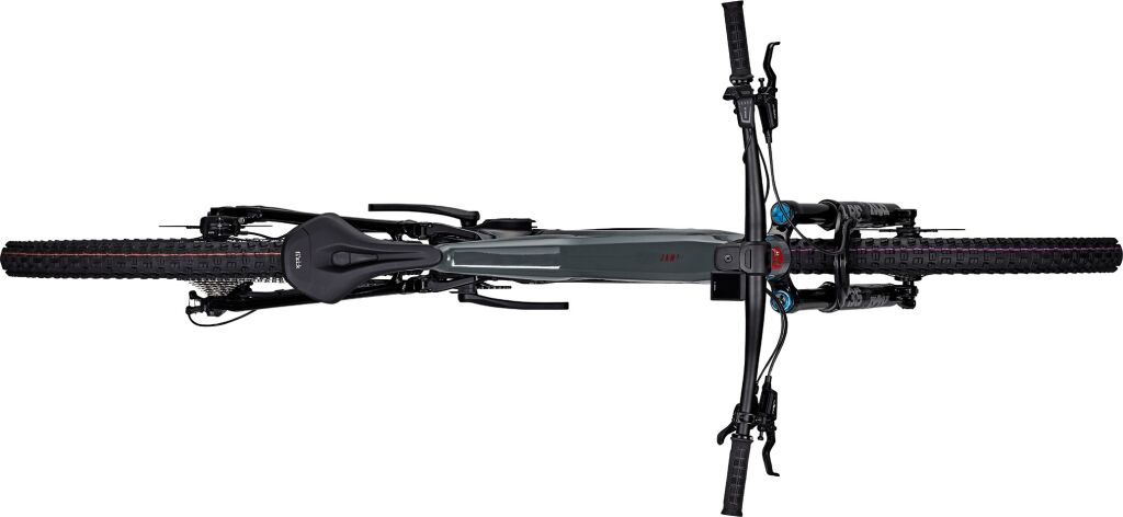 Celodpružené elektrokolo s hladce svařovaným hliníkovým rámem. Motor Bosch CX e-drive s 800 Wh baterií. Odpružení Fox. 12ti rychlostní řazení Shimano XT a výplety DT Swiss.